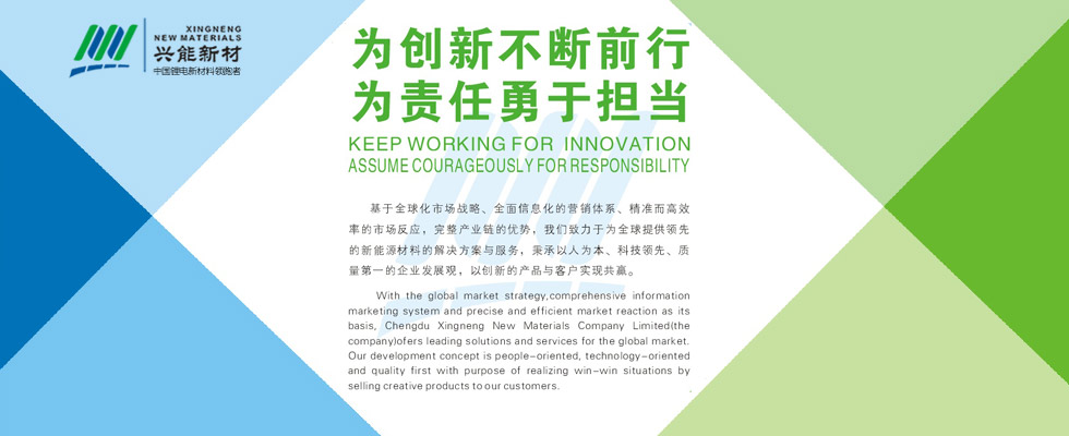 成都兴能新材料有限公司(以下简称"成都兴能新材"或"公司"),成立于2008年4月,注册地点是成都市高新技术产业开发区。公司主要业务是新能源矿产资源的投资、开发和锂电池新材料的研发、生产及销售,是国内外领先的锂电正、负极材料、"锰泰龙"锂离子电池的供应商,也是国内唯一一家拥有完整锂电池产业链的公司。