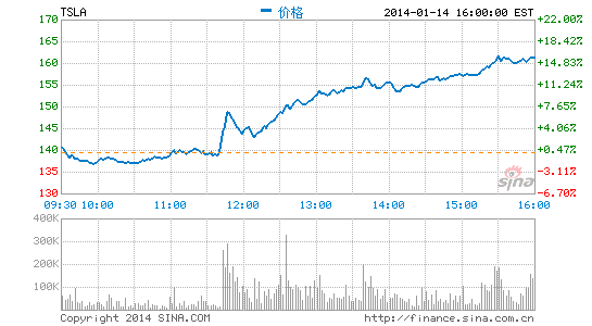 在销量超预期的消息公布后,特斯拉股价直线拉升7%,随后多头稍作喘息继续奋力上攻。截至美股收盘,特斯拉(TSLA)大涨15.74%至161.27美元。