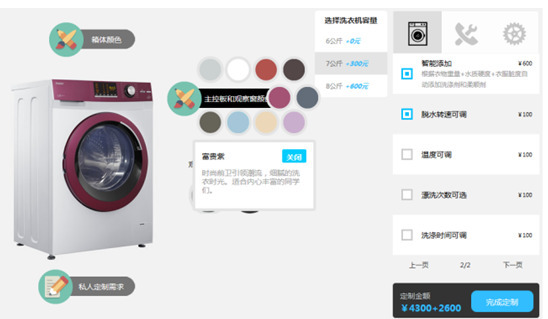 看起来不错的海尔官方商城的洗衣机定制页面: