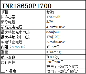 圆柱锂电芯 1700mAh 3.7V