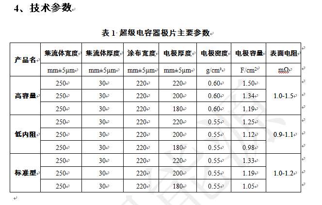本中心一直致力于超级电容器高性能极片制造技术的研究与开发,通过与中南大学及国外科研机构的资深专家长期、紧密合作,成功研制出一种高导、富孔、塑性超级电容器极片。该极片采用高性能多孔活性炭作为主要原料,采取包括铝箔层、导电层、活性层、增塑层的多层复合结构,具备高电导、强粘结、富孔、塑性、易加工等突出优势,可以在有效控制生产成本的前提下,大幅提高超级电容器性能,完全满足各种市场领域的应用要求。