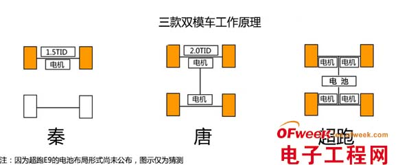 所以比亚迪规划了更高级的混合动力——唐。唐类似于保时捷918的混合动力方式,在秦的基础上,后轮加了一个电机,组成前后混合动力模式。这样起步可以四轮驱动,不是5.9秒,而是4.9秒、3.9秒,起步可以秒杀超跑的。