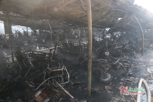 300余辆电动车被烧得只剩架子