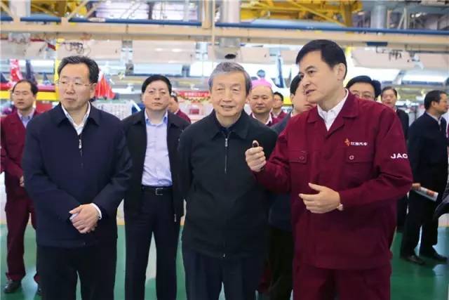 工信部副部长冯飞,省委常委、常务副省长陈树隆,省委常委、合肥市委书记吴存荣陪同调研。江淮汽车集团公司董事长安进陪同调研并介绍企业情况。