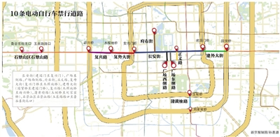 下周一(4月11日)起,长安街及其延长线等10条道路,将禁止电动自行车通行。硬闯上路的将被处以20元罚款,拒绝接受处罚的一律扣车。