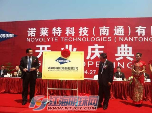 今天上午,诺莱特科技有限公司在江苏南通经济技术开发区正式开业投产,企业主要生产锂电池电解液的核心材料六氟磷酸锂,这一项目的启动将有效改变我国锂电池电解液材料依赖国外进口的局面。