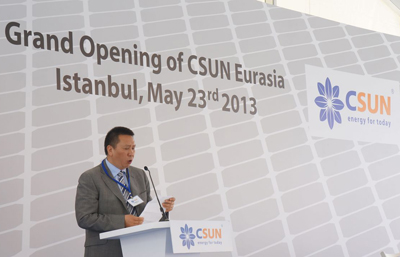 5月23日,CSUN位于伊斯坦布尔的土耳其工厂举行了隆重的投产仪式。CSUN董事长陆廷秀先生及当地合作伙伴SEUL能源董事长Cargi Seymen出席仪式并致辞。此次投产仪式还特别邀请土耳其能源部部长Taner Yildiz,执政党副总理Salih Kapusuz以及中国总领事张清洋一同出席,并且受到土耳其当地政府、客户、金融机构、媒体的高度关注。