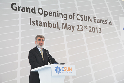 土耳其能源部部长Taner Yildiz 在演讲中指出了在当地建立光伏企业对与土耳其能源发展的重要性。他热烈祝贺CSUN土耳其工厂的开张,希望土耳其工厂能够进一步得到获取投资人的投资及更好的补贴。