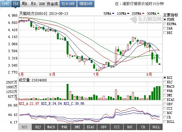 受多重利空因素影响,天能动力(00819.HK)自8月5日以来,短短5个交易日股价从3.86港元一路放量下跌,昨日(13日)收盘3.03港元,按照天能动力总股本111190.80万股计算,已跌去市值92288.36万港元。