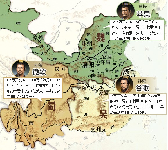 作为“三足”里最弱的一方,微软掌门人鲍尔默将会在12个月内退休。这是WP走向未来的一个风险——这一幕又和刘备白帝城托孤有些像——接下来故事的关键是,微软会找到一个百折不挠的诸葛亮,带着理想成功杀进中原吗?
