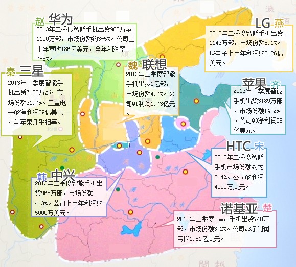 所以,如今的硬件市场远未到格局鼎定的时刻。三星和苹果占据了一定优势,其他人也有各自的机会,甚至在前八名之外的厂商, 也都有迎头赶上的可能。这有些像战国时期的局面。西秦东齐实力占优,其他国家也都有革弊迎新的机会。生死存亡之局,谁都不甘心退出舞台。
