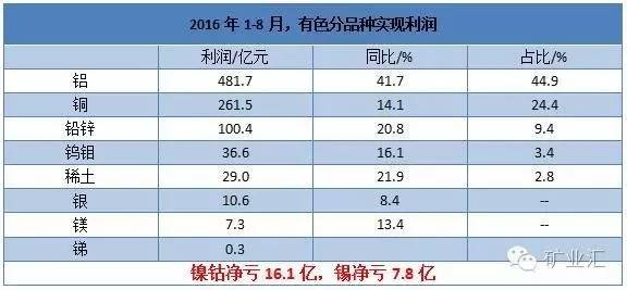 2015年矿业行业最不景气的一年,可是2016年冰冻的矿业行业开始遇暖融化,铝扭亏为盈,铅锌迎来了连续涨价,有色金属行业前景一片大好,可是在其他金属行业欣欣向荣之时,镍钴2016年1-8月份亏了16.1亿元。