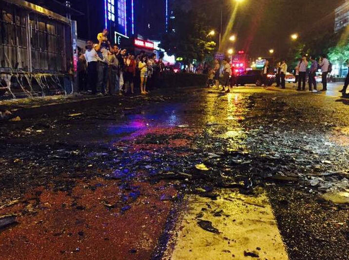 大火扑灭后,公交车也基本报废,仅剩下铁架子,路面上散满一堆碎玻璃渣。目前,受轻伤人员已被送往医院诊治。