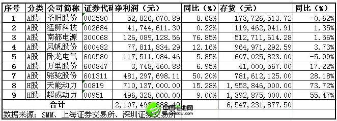据统计, A股、港股9家铅蓄电池企业2012年净利达21.07亿元,存货高达65.47亿元,存货量为净利的3.1倍。