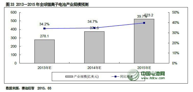 中国电池杂志-中国电池网9月4日电(杨阳 北京报道)中国电池网战略合作机构——赛迪顾问预计,2013 年全球锂离子电池产业规模将达到278.1 亿美元,2015 年,新能源汽车的产业化应用将带动全球锂离子电池的产业规模达到523.2 亿美元。