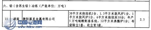 另外,再生铅冶炼企业淘汰一家:衡阳雁星金属有限公司。