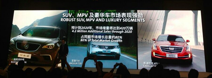 也就是说,未来五年整个汽车市场的折合平均年增长率约为 3% 至 5%,这一增长规模相当于每年新增一个澳大利亚市场。其中,通用汽车看好的是 SUV、MPV 以及豪华车产品的需求,通用汽车认为,未来五年这三大细分市场的总规模有望扩容 420 万辆,占整体汽车市场扩容量的 80%。尤其是豪华车,该公司预计豪华车细分领域的平均年增长率可达到 10% 以上。