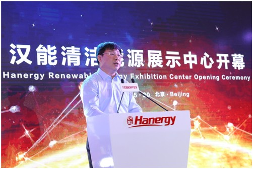 汉能控股集团董事局主席李河君在清洁能源展示中心开馆仪式上发言