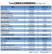 Tesla主要股东及高管持股情况 13高管占48.21%