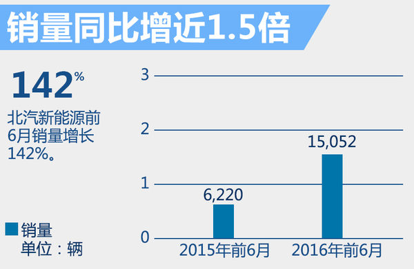 从北汽新能源官方获悉,今年上半年,旗下新能源产品销量同比增长近1.5倍,全年仍将维持8万辆的销量目标。此外北汽新能源将继续进行充电桩建设,到年底其数量有望达到1万个。...