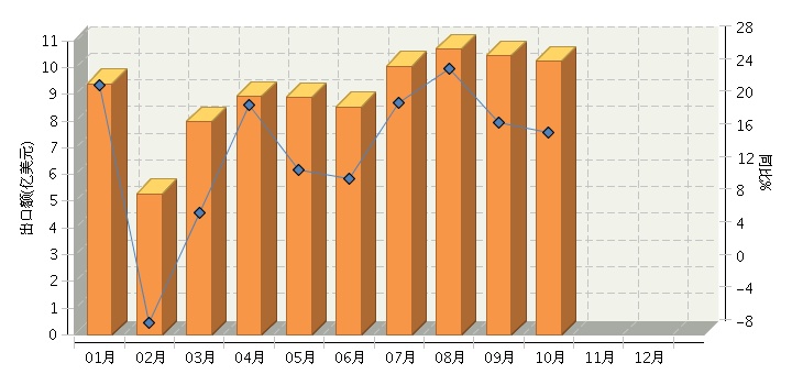 1-10月中国电池行业累计完成出口额90.46亿美元