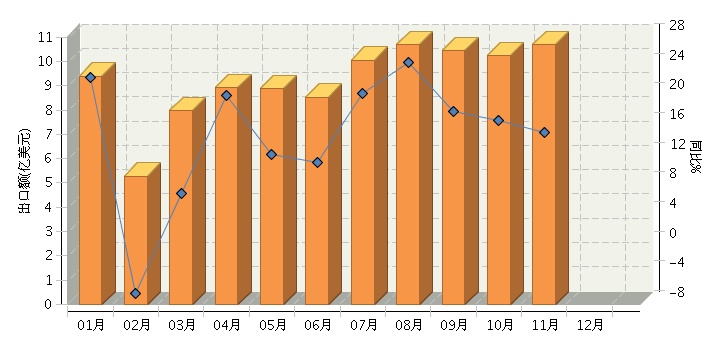 2014年11月全国电池行业出口额同比增长15.17%
