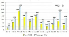 法国11月电动汽车销量增长突破1100台,其中乘用车销量为694台,商用车销量为451台,共计1145台。 法国2013年1-11月电动汽车销量统计 与前几个月相比,11月的销量保持稳定,法国今年前11个月电动...