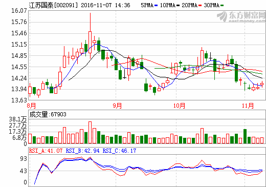 江苏国泰:2016年前三季营收57.34亿元 净利润2.42亿元