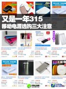 第1页:移动电源选购三要素 转眼间,一年一度的315马上就要来临了,在每年的315前后,消费者对产品的品质和服务意识都有所增强。而随着智能大屏手机的飞速发展,让传统的移动电源也成为了许多人在购买手机之后的一个必选配件,不过对于那些消费者来说,什么样的移动电源好,或者说怎么才能够选...