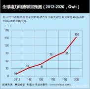 从电动汽车来看,预计2015年和2020年全球的电动汽车的产量分别为430万辆和1100万辆,而其中包含EV、PHEV和HEV,其动力电池单位容量平均分别为50Kwh、10Kwh和2Kwh,2015年和2020年分别为动力电池带来...