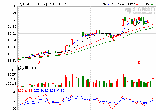 在停牌之前,风帆股份股价连续大涨,2015年5月25日~27日连续三个交易日收盘价格涨幅偏离值累计超过20%。...