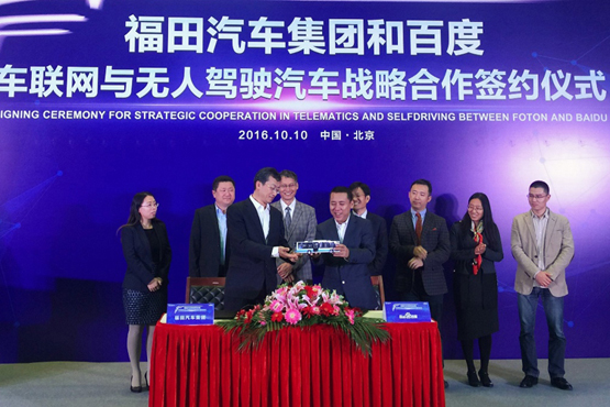 10月10日,福田汽车集团在北京与百度签署战略合作协议,将就车联网、大数据、智能汽车和无人驾驶展开全面合作,共同打造面向未来的智能互联网商用汽车。...