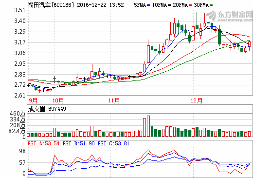 福田汽车:10月至今收到1.7亿元政府补助