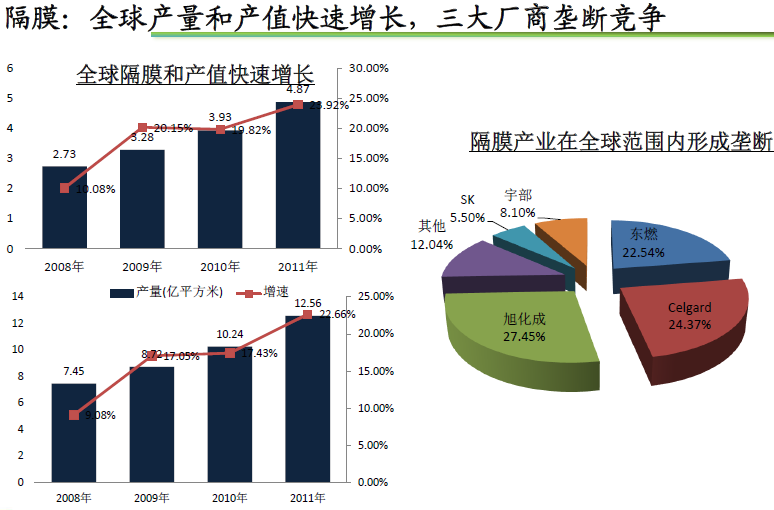 隔膜:全球产量和产值快速增长 三大厂商垄断竞争
