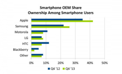 北京时间1月17日凌晨消息,市场研究公司NPD周四公布最新报告称,2013年第四季度苹果公司和三星仍是美国智能手机市场上的大赢家。 报告显示,这一季度iPhone在美国智能手机市场上的占有率为...