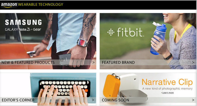亚马逊可穿戴商店的产品包括三星Gear 2智能手表、 Jawbone Up24智能手环等知名厂商的设备,也有知名度偏低的销售商的产品。...