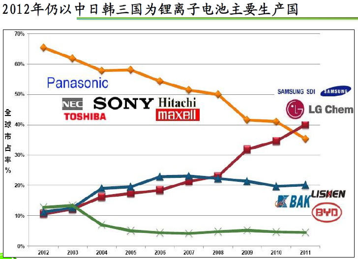 2012-2013年中日韩三国为锂电池主要生产国