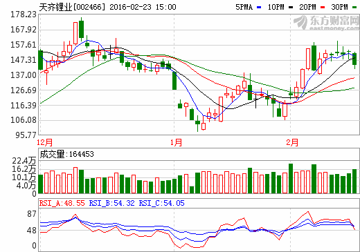 23日锂电池概念股盘后统计 天齐锂业跌幅6.08%