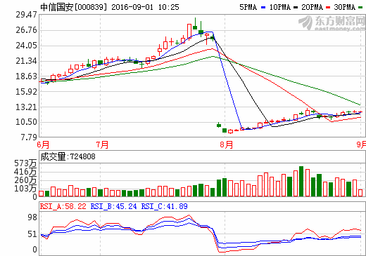 中信国安:上半年营收16.74亿元 同比增长37.19%