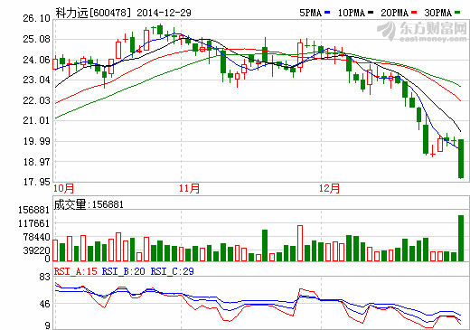 科力远29日开盘震荡下挫跌停 报于17.95元