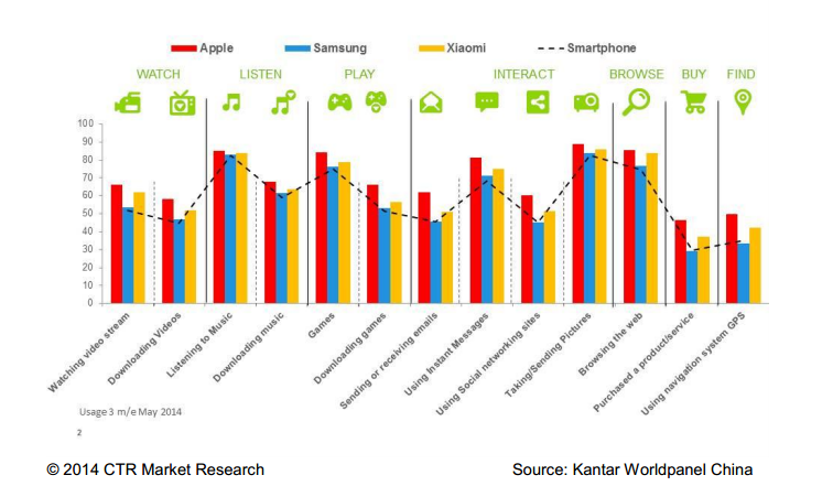 1-5月三星(Samsung)拿下中国城市智能手机市场 23% 的销售额占有率;小米、苹果(Aple Inc.)分居第 2、3 名,市占率分别为 21%、16%;华为、联想、酷派市占率分别达 10%、6%、6%;Oppo、中兴、宏达电市占率分别为 3%、2%、1%。...