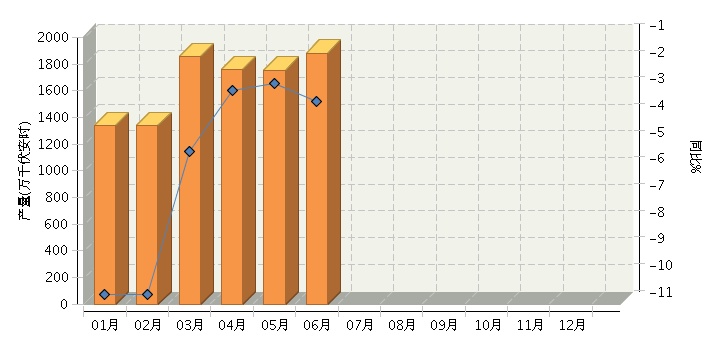 1-6月铅酸电池产量1亿千伏安时 同比下降5.35%