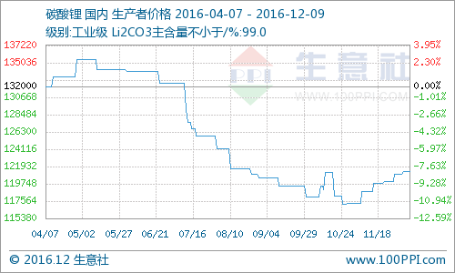 国内碳酸锂市场平稳运行 维持12万元/吨左右