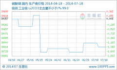 本周国内工业级碳酸锂行情价格再次走稳,本周一直稳定在38714元/吨,同比去年下降了8.29%。...