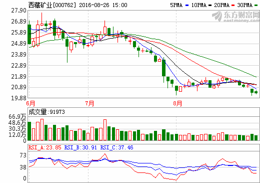 西藏矿业:2016上半年营收2.75亿元 同比下降34.28%
