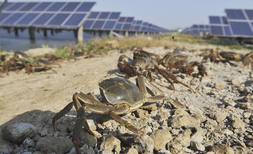 2013年10月24日,技术人员从新疆哈密石成子光伏园区的太阳能电池板旁走过。新疆哈密风电、光电资源丰富,截至目前,新疆哈密获得核准风电项目55个,总规模426.9万千瓦,现已有22个风电项目...
