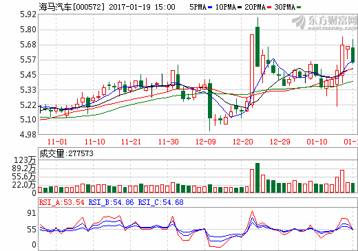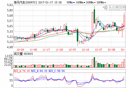 17日新能源汽车概念股盘后统计 海马汽车涨幅3.65%