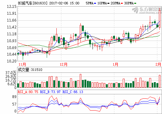6日新能源汽车概念股盘后统计 长城汽车涨幅5.26%