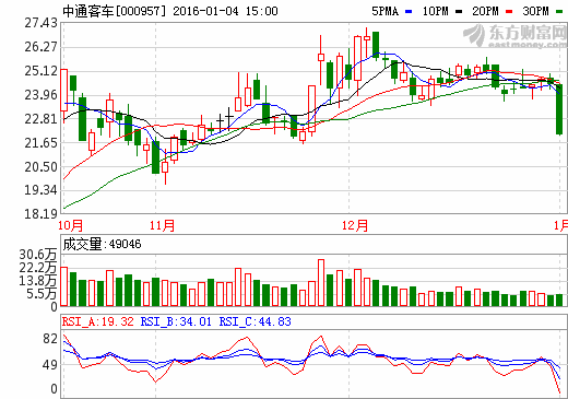 4日新能源汽车概念股盘后统计 中通客车跌停...