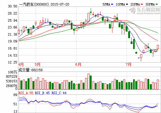 15日新能源汽车概念股盘后统计 一汽轿车跌停...